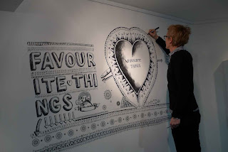 Toni Le Busque working on her large wall drawing for our ever changing "Favourite Things" wall.